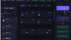ゲーム用のSEを作成するツールです。コードエージェントで作成しています。音がでます。 お使いのブラウザはiframeに対応していません。 操作① スライダーを移動させると音が作成されて鳴ります。(自動再生)② 再生ボタンと音量調整できます。...